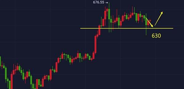 第二:支撐關注斐波那契黃金分割32.8%625-630附近,同樣不要追漲追跌有空間則離場。