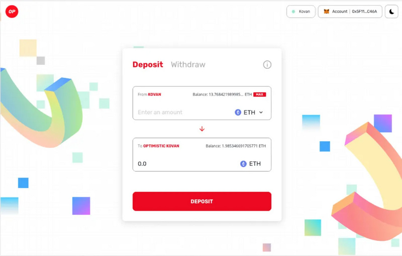 可以通過 Optimism Gateway將資產從layer1上的以太坊轉移到layer2 Optimism 。存款將在 5 分鐘內到達用戶的錢包,然后就可以立即開始在 Uniswap 上進行交易。