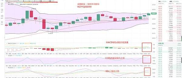 ETH行情分析? 日線圖大小陽線收盤,布林帶開口向上,下軌595附近形成支撐,MA5和MA10均線系統均向上發散移動,呈多頭排列.