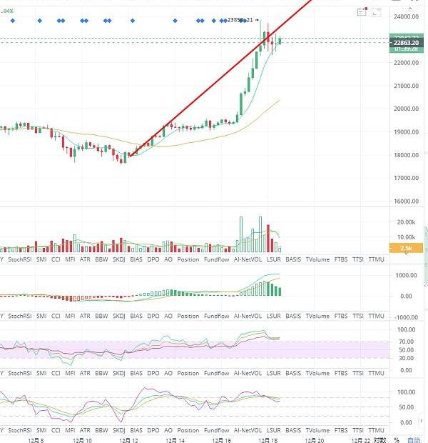 操作建議:如行情跌破22000附近關口,關注下方21000和20000大支撐,整體企穩可繼續做多