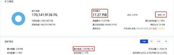 新增1PB算力需要質押:8087FIL