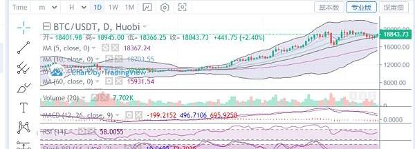 短周期小時圖上看,布林帶呈向上開口,行情小幅調整后再度向上19000阻力位置,目前并未順勢突破,局勢沖高回調至18800位置調整,楚初認為若是價格長時間位于此位置,行情有望再度上行突破19000一線壓制,所以楚初建議各位提醒幣友做好準備。