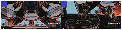 這是一個名為Atari Casino的賭場,是Atari與加密賭場建設者Decentral Fames合作開展的虛擬賭場,該項目基于其加密貨幣$DG。面對極具渲染力的賭場空間和神秘氛圍,我卻由于囊中羞澀,不能夠參與到刺激的賭博游戲中。在與服務員青蛙佩佩面面相覷后,我只能悻悻離開。