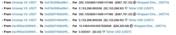 慢霧 AML 團隊分析統計,本次攻擊損失了約 4.98M USDT、2.56K WETH、96 WBTC、5.39M USDC、159.93K DAI、10.49K UNI,接近 2100 萬美元。