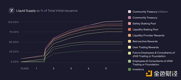 5%(50,000,000個DYDX)分配給社區儲備資金