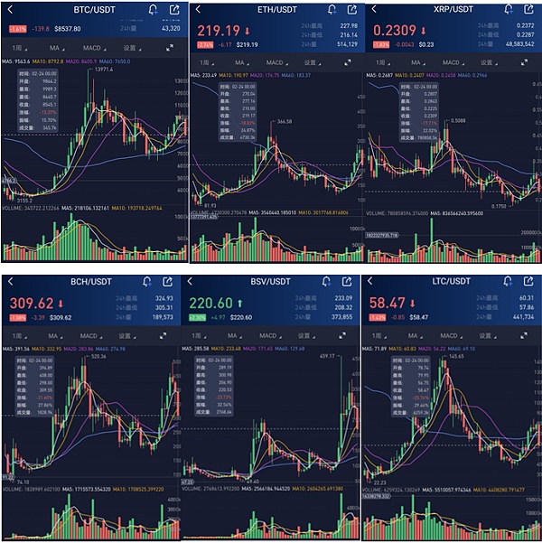 據上圖行情數據顯示,BTC本周最高漲至9989.3美元,最低跌至8440.7美元。從技術面看,BTC中期上行趨勢已破位,當前幣價在8500美元附近運行,該點位有較強的支撐作用,如果該點位持續失守且遲遲不能收復,那近期行情或仍將由空頭主導。