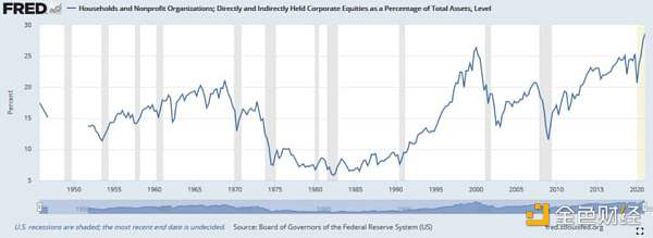 美國家庭凈資產中股票占比 來源:FRED