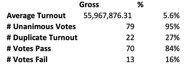 然而,對一些投票指標的深入研究表明,圍繞集中治理的擔憂可能是有道理的。