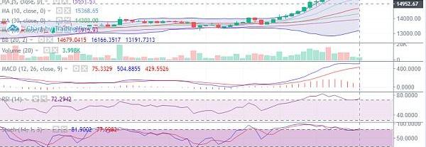 比特幣在凌晨時向下回撤,最低下落至15180點位,這與筆者所預期的正好一致;后期若是這一波觸底反彈可以使得幣價重回高位并企穩,則行情仍有繼續沖高的趨勢,反之則會繼續保持在該震蕩區間波動。