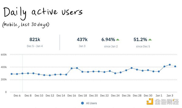 但從Blockfolio的用戶群來看,這次收購確實不愧為一個明智之舉。首先,Blockfolio擁有大量的日活躍用戶(DAUs)。雖然FTX 2021年日活用戶突破了60753,但Blockfolio在2020年12月至2021年1月期間平均日活為82.1萬。