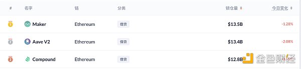 目前,compound的鎖倉為128億美元,Aave V2為133億美元,Maker為135億美元。而polygon上的aave和BSC的Venus分別為鎖倉22億美元和32億美元。