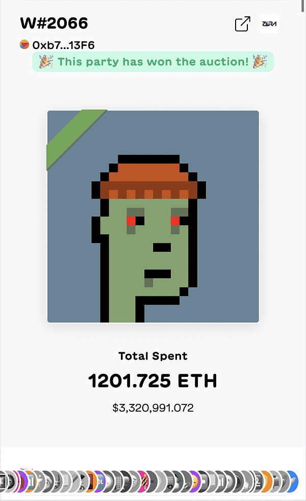 2021年8月,一張CryptoPunk像素頭像拍賣出了1201ETH(約合375萬美元)的高價,拍下這張頭像的,是478個人。