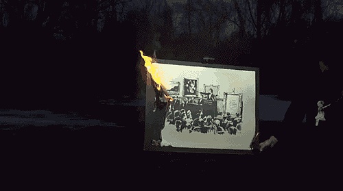 直播畫面里,蒙面的持有者點燃了《Mornos》。畫作熊熊燃燒,《Mornos》完成了從實體藝術品到NFT藝術品的轉變,火光似乎正向全世界預告著,NFT藝術的時代正式來臨。
