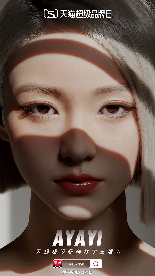 這就不得介紹一下本次天貓超級品牌日的數字主理人——AYAYI。據悉,AYAYI入職阿里后,二者將共同開啟元宇宙的營銷世界。未來,AYAYI將與天貓解鎖多個身份,如NFT藝術家、數字策展人、潮牌主理人、頂流數字人等等。