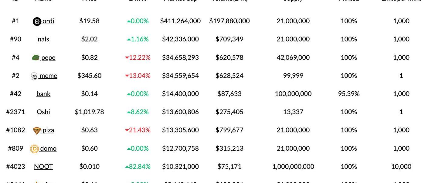 BRC-20代幣總市值超過7億美元,龍頭ORDI市值超過4億美元