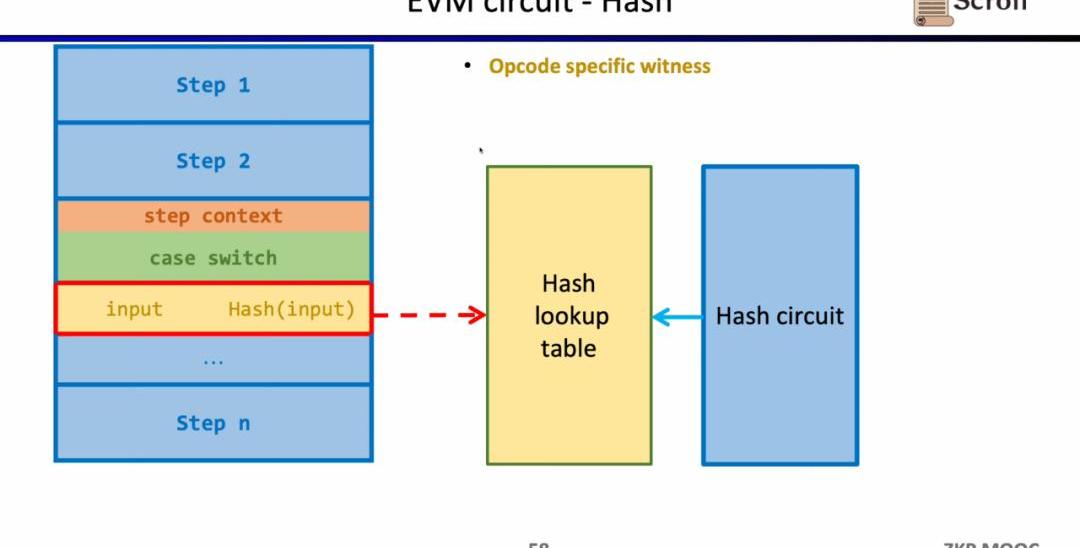 同樣的方法可以適用于zk不友好的哈希函數,構建哈希函數的查找表,將執行蹤跡中的哈希輸入和輸出映射到查找表,利用額外的哈希電路(HashCircuit)來驗證哈希查找表的正確性。