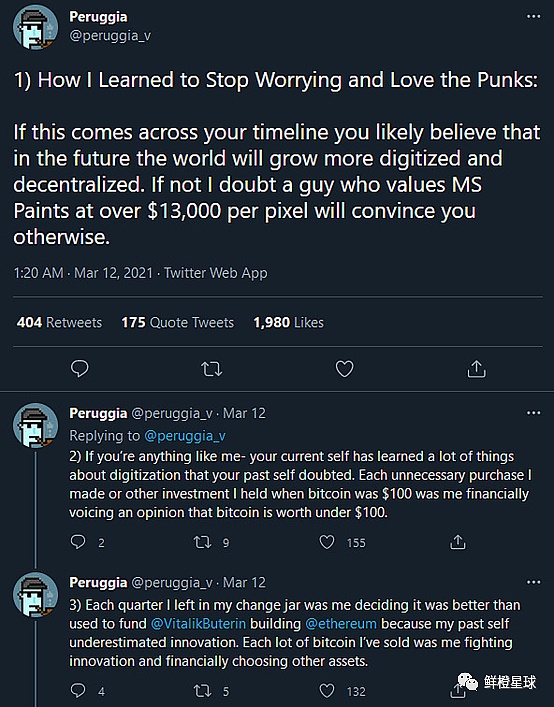 2021年是NFT大火的一年,Cryptopunk是一個人的匿名名片,只需要貼出以太錢包,大家自然會respect你,因為很簡單就能查到你持有啥NFT還有什么時候買的Punk。 在Twitter上面隨便一看,討論NFT的人大多都是Punk頭像,已經逐漸成為一個新潮流或者信仰(cult)。