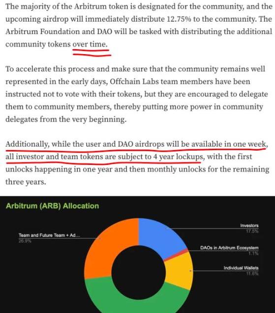 然后,Arbitrum還試圖偷偷搞一個虛假去中心化計劃,但最終被識破了,導致代幣價格下跌。