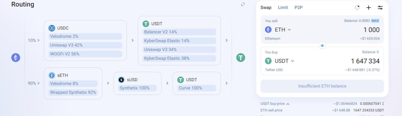 而這種想象力,一方面是新的市場不受統一債務池的限制,采用了比較流行的CDP模式,可能將使得sUSD等支持原子交換的資產作為未來鏈上交易的重要中樞。只需要0.35%手續費,就可以依據預言機價格直接成交的模式可以相當大程度上增加交易深度,并進一步成為通過聚合器中交易的首選路徑。