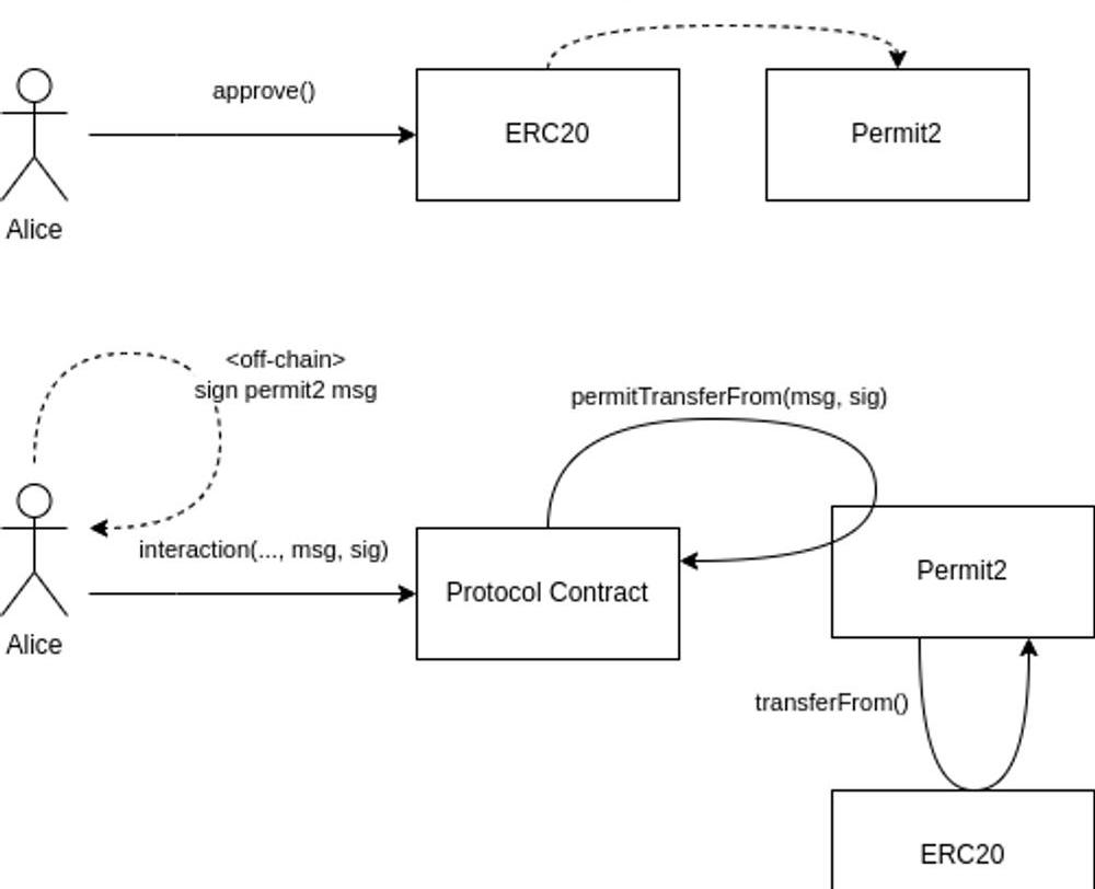 總體來看雖然要求用戶先授權許可似乎是一種倒退。但是,用戶不是直接將其授予某個協議,而是將其授予規范的Permit2合約。用戶只需進行一次授權,則可以跳過后續所有的協議與其交易的授權操作,改用鏈下簽名替代。