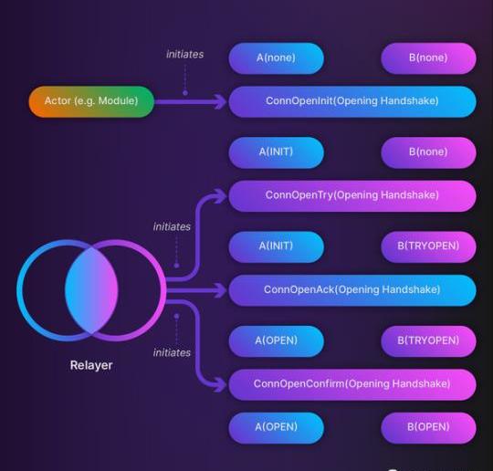 握手?1–OpenInit,從鏈?A發起的此握手將其連接狀態更新為INIT