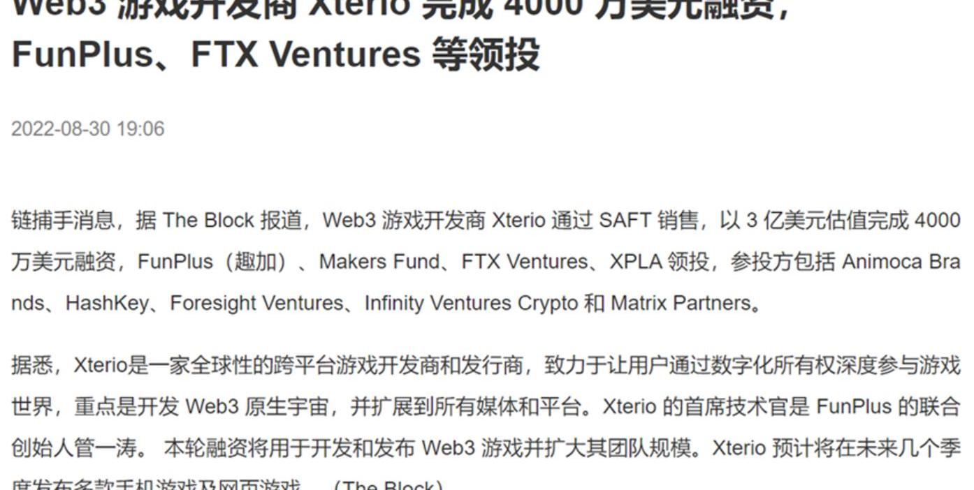 3,設立了海外架構的,都已經在具體深耕項目了,已經官宣的就是代表作阿瓦隆之王的Funplus,投資成立了Xterio做元宇宙平臺,瓜友們關注下。同時大家可以八卦下FTXVenture投資的份額會是怎么處理,哈哈哈。