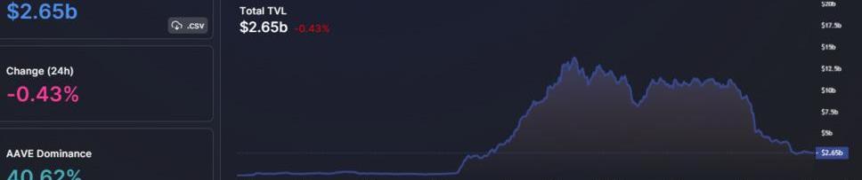 Aave在所有生態項目的TVL中占比接近一半,占比高,很大程度是因為跌幅最少,距離高點跌幅僅30%,其余項目距離高點的跌幅在70%-90%。