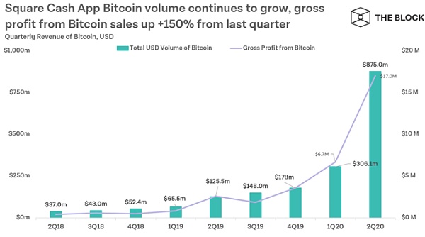 事實上早在2019年Square就成立了一個獨立團隊Square Crypto,致力于為比特幣開源工作做貢獻。Square甚至還發起了一個非營利組織,加密貨幣開放專利聯盟(COPA) ,以鼓勵加密創新和為已有專利的加密產品開放訪問。這一系列對加密貨幣的支持舉動為Square帶來了豐厚的回報。Square允許消費者使用Cash App(Square推出的軟件,專門服務比特幣相關的交易)進行消費并存儲比特幣。Square的比特幣收入也從2019年的5.165億美元增長到去年的47.5億美元。