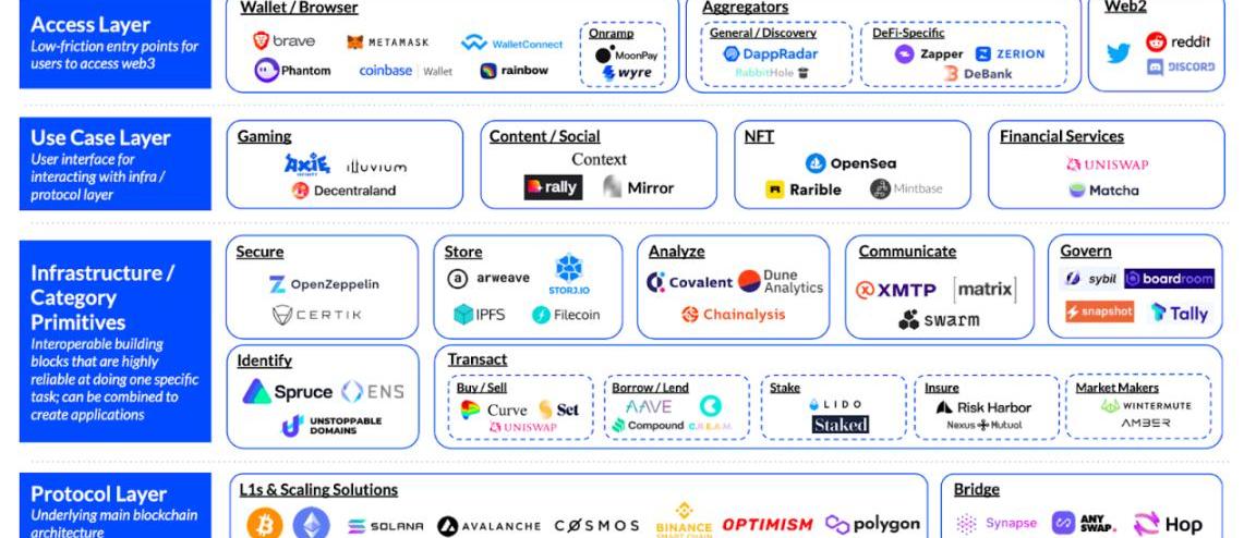 現在的Web3/Crypto充斥著各種新鮮的名詞,讓這個本就晦澀的新行業更令人費解。從技術/應用上的共識算法、Rollup、零知識證明、DeFi、NFT、GameFi、DAO、跨鏈橋、預言機、DID、SBT,到概念上的密碼朋克、主權個人、去中心化、抗審查、無許可、可組合性、創作者經濟、分布式治理、價值互聯網、永久存儲、CodeisLaw、XtoEarn,都讓人聽得云里霧里,再加上充斥著各類監管禁令、意識形態、騙局、旁氏、低效且反直覺的應用場景,讓人實在摸不清脈絡。