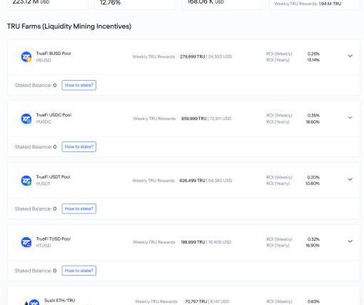 其中,針對Lending和SushiswapTRU-WETHLiquidityProviding部分的激勵,現在每一周是194萬枚TRU。年化收益率在10%以上。