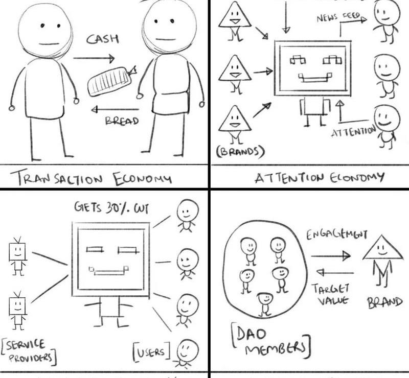 社區經濟:社區經濟是合作社的演變。互聯網讓我們接觸到全球市場,智能合約使我們無需中介就可以相互信任。我們一直處于探索替代經濟模式的階段。這就是?DAO?的意義所在,它們將個人自治與以前不存在的經濟機會聯系起來。