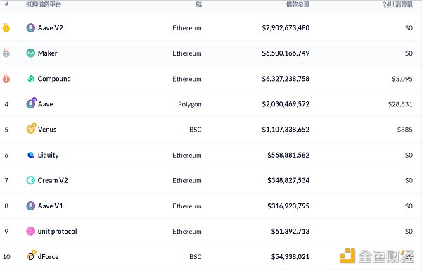 DeFi項目鎖定資產前十排名及鎖倉量,數據來源:Debank