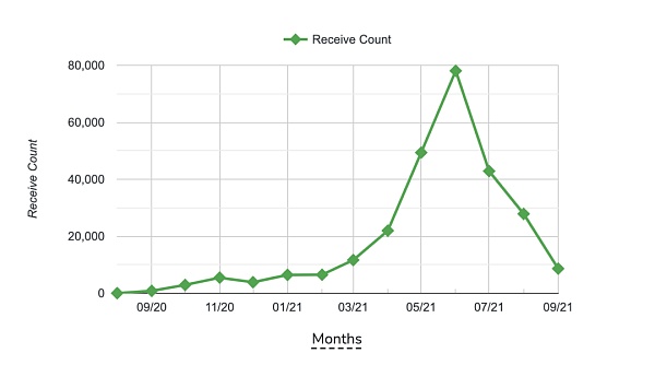 查看PolygonBridge合約地址的數據變化,我們發現,向合約轉賬(存款)的交易數量在6月份達到峰值后,一路在下降,目前已經回到今年3月的水平。從合約轉出情況也出現類似走勢,不過絕對數量仍低于流入。也就是說,目前PolygonBridge上的操作頻率正在降低,從以太坊到Polygon的遷徙大高潮已經結束,以太坊資產仍在流入,但是總體速度在放緩,TVL逐漸趨于穩定。