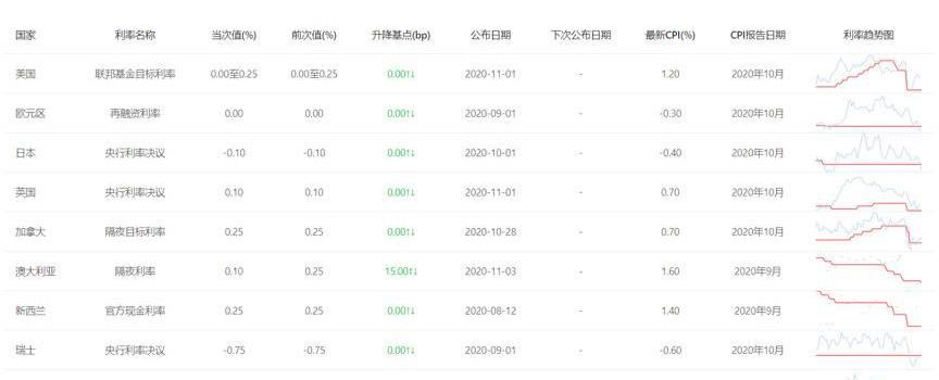 大放水的另一面是利率的大幅下降。據IDEG數據引擎顯示,主要的發達國家利率已跌破或趨近于0,其中瑞士央行利率甚至達到了不可思議的-0.75%。