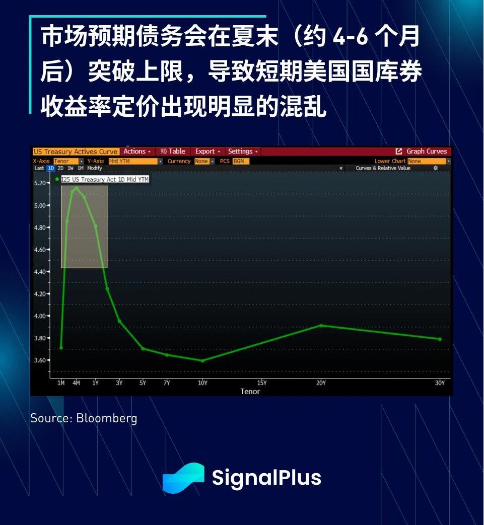 今年何時會出現債務上限違約問題,最大的變數將是稅收收入,如果收稅速度大幅下降,可能會將違約日期和隨之而來的國會邊緣政策提前到6月初(目前的預期是7月至8月左右)。雖然人們總是認為財政部違約是一個難以想像的結果,但當前上的對立環境比以往任何時期都更明顯,不能排除有因素導致政策錯誤的風險,因此,短期美國國庫券4-6個月窗口的收益率比當前高出約100個基點,以反映風險溢價,如果“最后期限”意外被提前至6月或更早的時間,這情況肯定會被視作一個負面的風險事件。