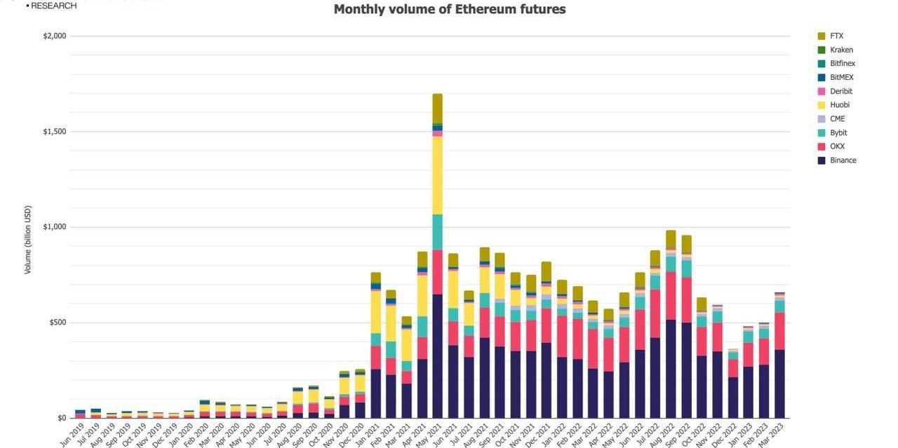 11、三月芝商所以太坊期貨月均交易額達到6590億美元,漲幅為32.1%。