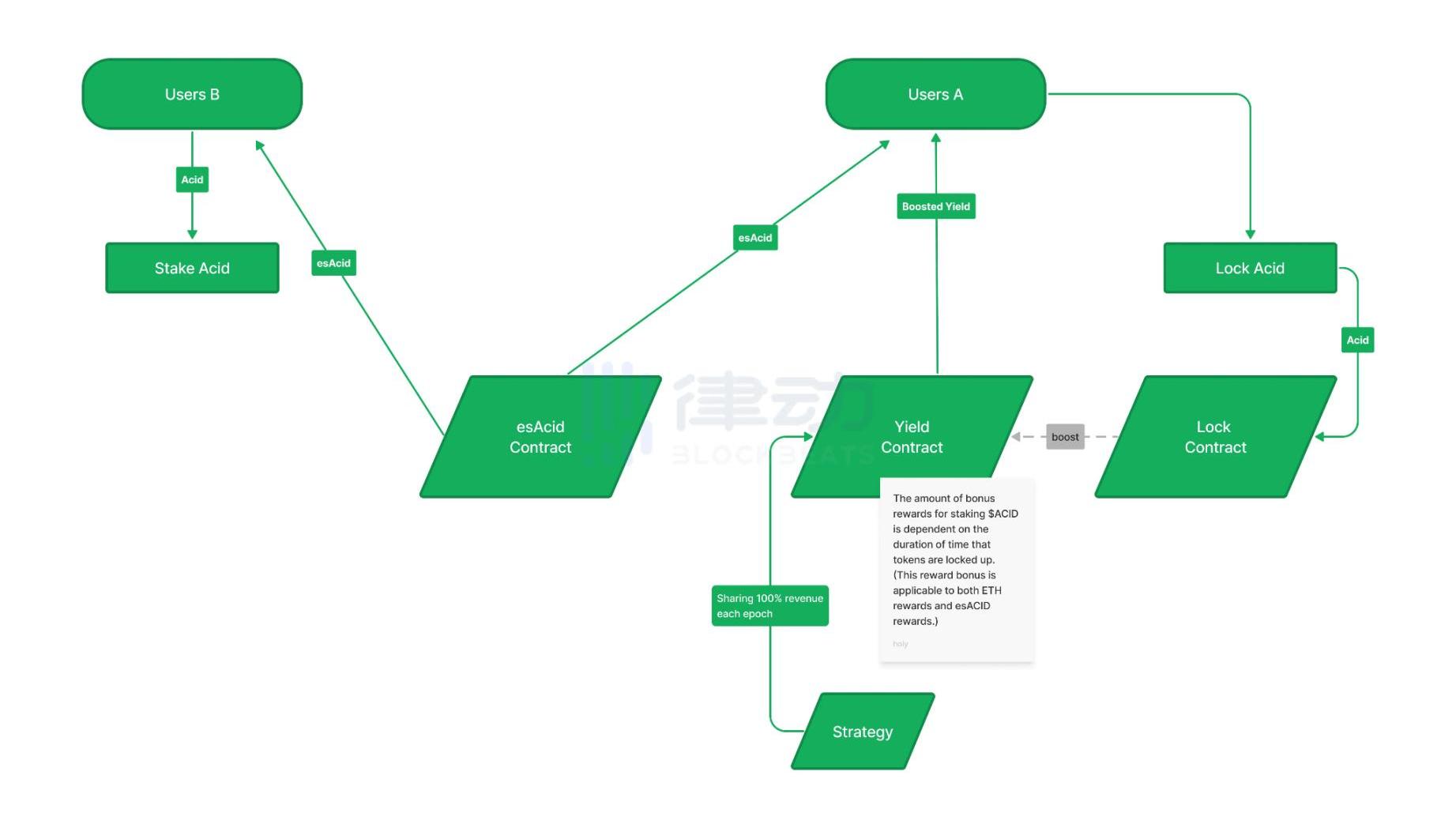 0xAcidDAO:最大化LSD資產回報的管理協議,即將上線Arbitrum和Ethereum。主要策略如下圖,將大部分資產放在穩定的節點上,一部分放入高收益策略比如有token補貼的Frax、AuraLPPool,今日宣布了與Pendle合作進行收益杠桿化,并且自己有借貸、LP等服務,更多可以點擊這里。