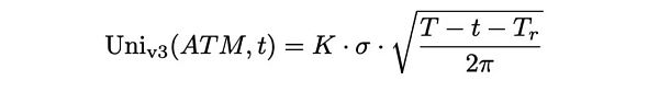 正如我關于在Uniswap v3中創建永久期權的文章所示,一個具有范圍因子r的Uni v3 LP頭寸的良好近似是在時間T_r的常規看跌期權,其中