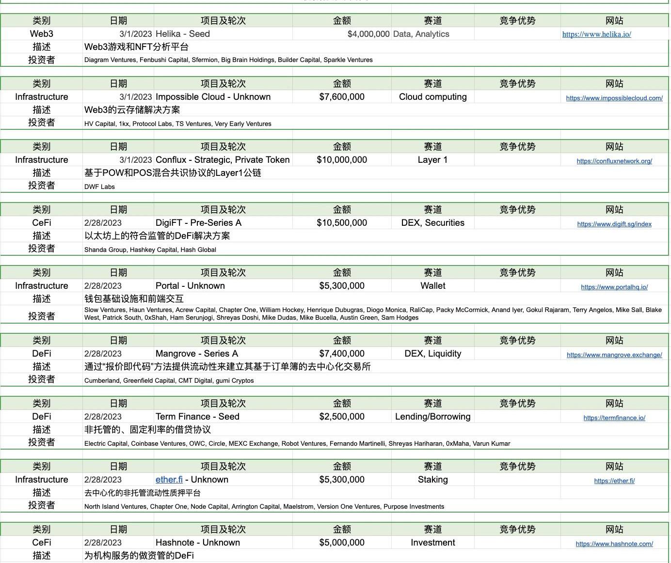 NFT市場總市值本周開始上升,并且交易中sale成交的數量也有明顯回升。Blur的熱度不斷攀升,占據的市場份額繼上周之后繼續上漲,幾乎已經和opensea占據的比例系統。同時,本周NFT買方的數量大幅降低。6.項目最新融資情況