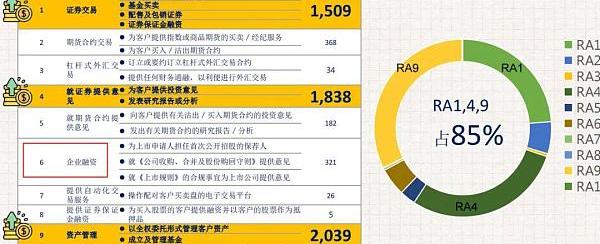 做為資產公司我們本次研究主要關注在1,4號牌和9號牌的申請所謂的149牌照,其實就是1類、4類和9類牌照的組合。1類牌照DealinginSecurities1類牌照,即證券交易牌照,只有獲得了1類牌照,你才能在香港為客戶提供證券交易、并提供經紀服務。相當于內地證券公司為客戶提供股票買賣類的業務。如果金融機構要在香港進行證券交易活動,需要持有一類牌照,所以第一類牌照是十大類牌照中最常見的,持有牌照的個人和機構的數量也是所有牌照中最多的。4類牌照AdvisingonSecurities4類牌照-給客戶提供證券建議的牌照,只有獲得了4類牌照,你才能在香港為客戶提供證券投資建議,發布相關的研究報告。很多企業會選擇同時辦理1號牌照和4號牌照。香港4號牌照的主營服務就證券提供意見,但是不要以為提供意見就沒有風險,因為在香港的金融圈,如果誤導相關的專業投資者,香港證監會會給予罰款的處罰,同時香港4號牌照隨時都會被撤銷。9類牌照AssetManagement9類牌照,即提供資產管理牌照,只有獲得了9類牌照,你才能在香港發行基金,管理客戶資金等。相當于內地的私募基金牌照。持有該牌照,意味著在國際資本市場上獲得了“通行證”,不僅可以直接參與境外的投資,還可管理海外投資者的資金。
