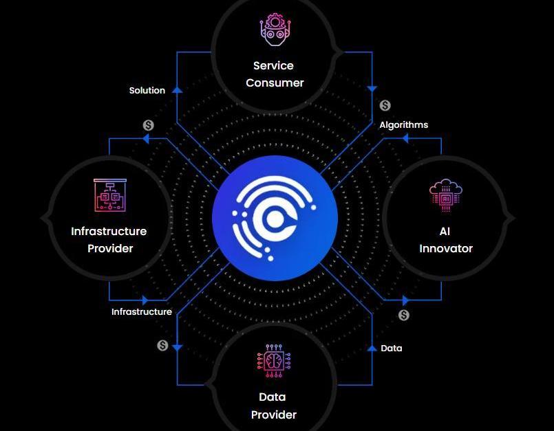 Openfabric是一個用于構建和連接AI應用程序的平臺。通過該平臺,人工智能創新者、數據提供商、企業和基礎設施提供商之間的協作將促進新智能算法和服務的創建和使用。Openfabric生態系統由4個角色組成:算法創建者、數據提供商、基礎設施提供商、服務消費者,其中服務消費者需要向其他3種服務商付費。算法創建者:利用其專業知識來創建能夠解決復雜業務問題的AI算法。數據提供商:確保分發大量訓練AI算法所需的數據。基礎設施提供商:運行AI平臺的所有硬件。服務消費者:需要特定業務產品或服務的最終用戶。