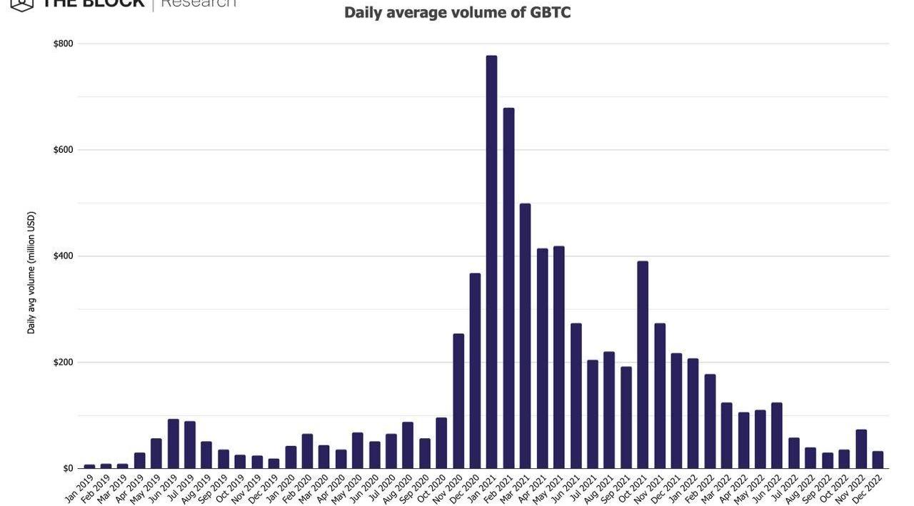 8、GBTC日均交易額暴跌55.5%,降至3300萬美元低點。