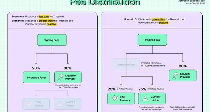作為持有人:?質押$PERP給你vePERP。一旦保險基金達到其門檻,vePERP將授予您15%的協議收入。?vePERP持有人還可以鎖定$PERP賺取總交易費的10%。