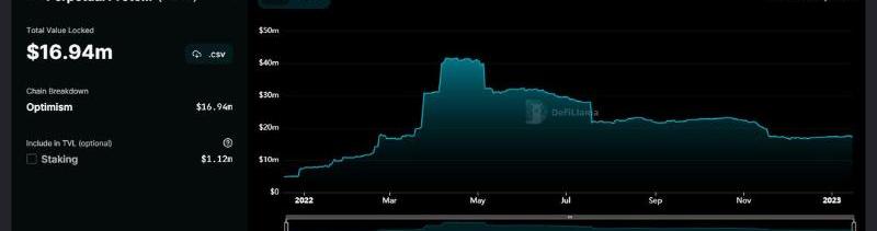 總價值鎖定:Perp擁有約1700萬美元的美元,從22年底到23年初保持平穩,這表明資本一直保持相對粘性,這是產品與市場契合的一個好跡象。