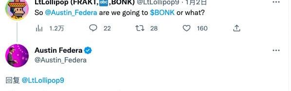 確實,在被FTX事件影響后,Solana經歷了嚴重的流動性緊縮,其生態項目也紛紛出逃。在沉寂了一段時間后,BONK的出現同時伴隨著SOL代幣價格從8.3美元飆升到11.91美元,最高漲幅43%,這算得上是SOL近期為數不多的幣價飆升時刻。此外,Solana基金會的戰略與傳播負責人AustinFedera也在最近的一條推文中表達了他對BONK的支持。