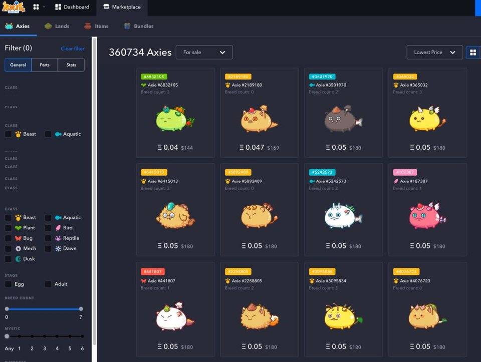 例如,如果你想買一個 Axie,你不會從訪問 OpenSea 開始。相反,你可以前往 Axie 的「內部市場」。在那里,你會發現一個為產品量身定做的界面,具有完美的過濾和搜索功能。此外,還有一個特定項目的錢包和交易跟蹤器。