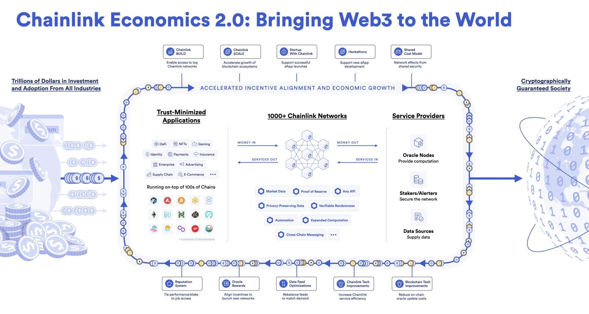 Chainlink2.0經濟學將為Chainlink網絡實現可持續增長、加密經濟安全以及更有效的價值捕獲機制。要了解更多關于Chainlink權益質押以及2.0經濟學的信息,請關注以下渠道:Chainlink2.0經濟學網頁Chainlink權益質押網頁SergeyNazarov在2022SmartCon的主旨演講Chainlink權益質押路線圖要了解更多關于Chainlink的資訊,請訪問Chainlink官網,并關注Chainlink官方推特,獲得Chainlink最新的消息和公告。——免責聲明:本文內容僅供參考,涉及未來發展計劃,比如產品功能、開發工作以及功能發布的時間節點。這些內容僅為預測,反應了目前的預期和觀點。這些預期基于假設并存在風險和不確定性,隨時可能會出現改變。Chainlink優先參與資格Web應用本身并不保障任何權利,并且不保障你一定能參與Chainlink權益質押計劃。權益質押資格和參與條件可能會隨時出現變更,并且不會提前通知。另外,雖然我們相信本文構想的所有計劃、產品或功能都是基于合理的假設,但不保證這些計劃、產品或功能將完全按照計劃執行;也不保證執行的結果不會與本文內容出現嚴重偏差。本文所有內容只在首次發布之日有效,并且我們在之后也許不會對本文進行更新。