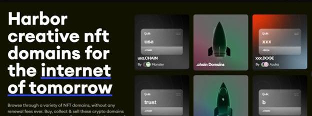 Quik是一個提供NFT域名和子域名的市場。只要完成mint,用戶就無需支付續費。該平臺支持PC、iOs和Android設備,支持IPFS,允許用戶在網絡上發送和接收文件。由于它的去中心化域名,Quik用戶能完全掌控他們的網站,可以將它們轉移到他們的私人錢包,或在平臺內像OpenSea這樣的市場上出售它們。在Quick上至少有10個可用NFTTLDs。.metaverse、.vr、.chain、.address、.io、.bored、.doge、.shib、.btc、.web3等結尾的域名都可作為Quick的域名使用。
