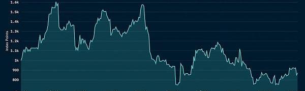 該指標衡量了存入以太坊上DeFi協議的資產的價值這一下降可歸因于加密貨幣價格的下跌,因為DeFiTVL中的大部分資產是由價格下跌的波動性資產組成的,例如ETH和wBTC。下降也可能是由于鏈上收益率下降,對于資本的吸引力降低,導致流動性外流。現貨DEX交易量下降了31.6%,從2816.8億美元降至1927.3億美元