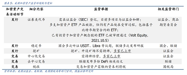 以疏代堵,不斷試水。縱觀加密資產產業鏈的若干環節,不管是發行部分的挖礦、發行,還是交易環節的經營交易所、參與交易,美國均未明令禁止,但均有嚴格的監管。主要由各監管部門發布公告,聲明哪些活動需要參照其他活動申請牌照,例如發行證券類代幣,要參照發行證券,向證監會提出申請,類似于比特幣和以太坊這樣無實際控制人的項目,可以免于申請,類似于EOS等證券類項目,需向證監會交罰款,而美國對部分加密資產的定性是商品,與其相關的期貨交易受美國商品期貨交易委員會監管(CFTC)。美國也有部分州,要求在本州經營加密資產相關活動服務商,需要州政府金融監管部門申請“比特牌照”,例如紐約州的BitLicense。